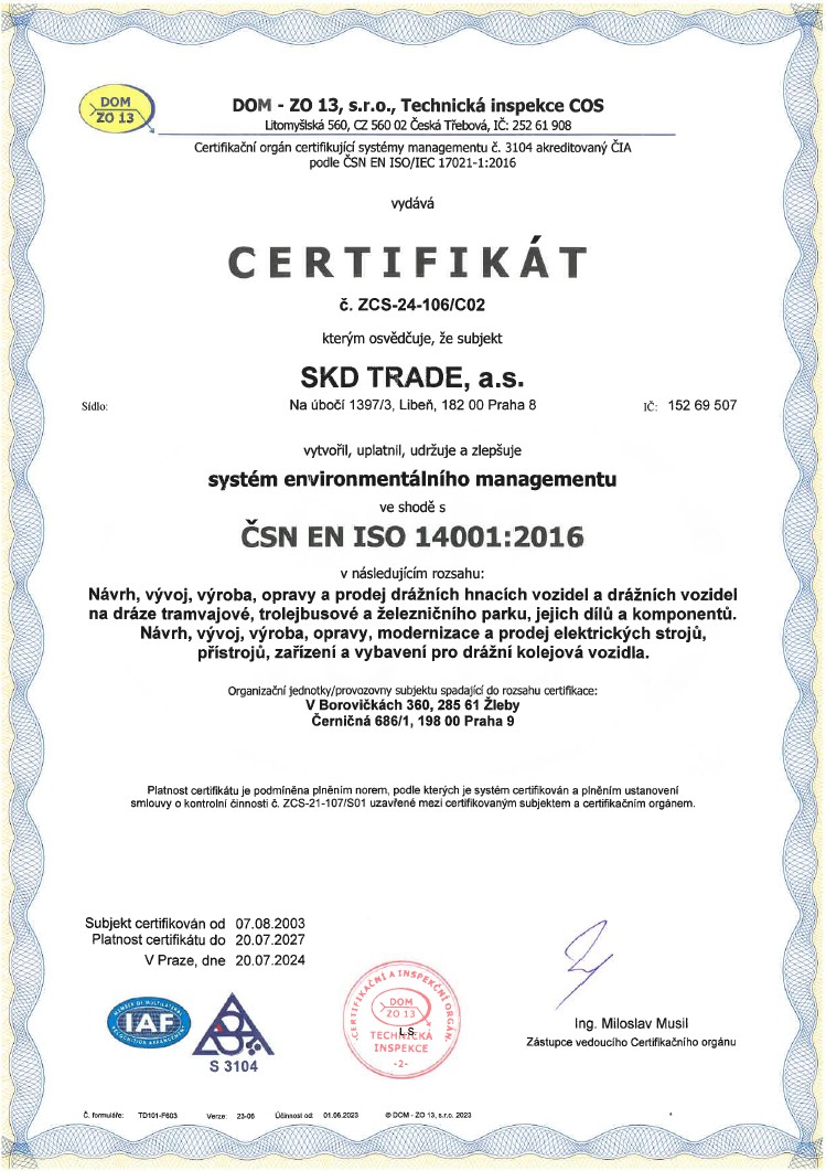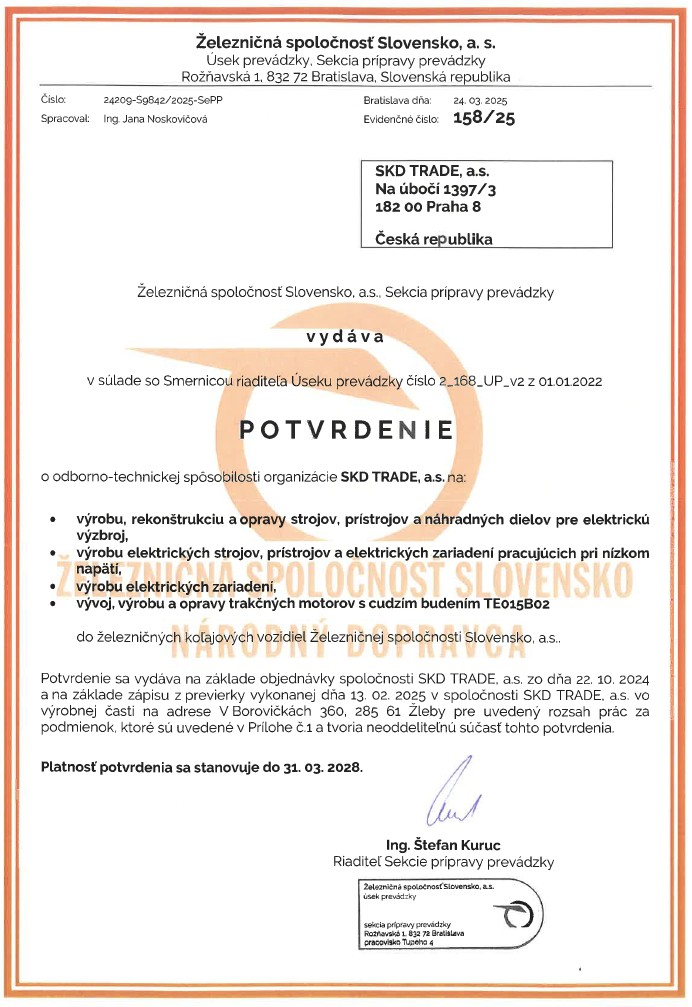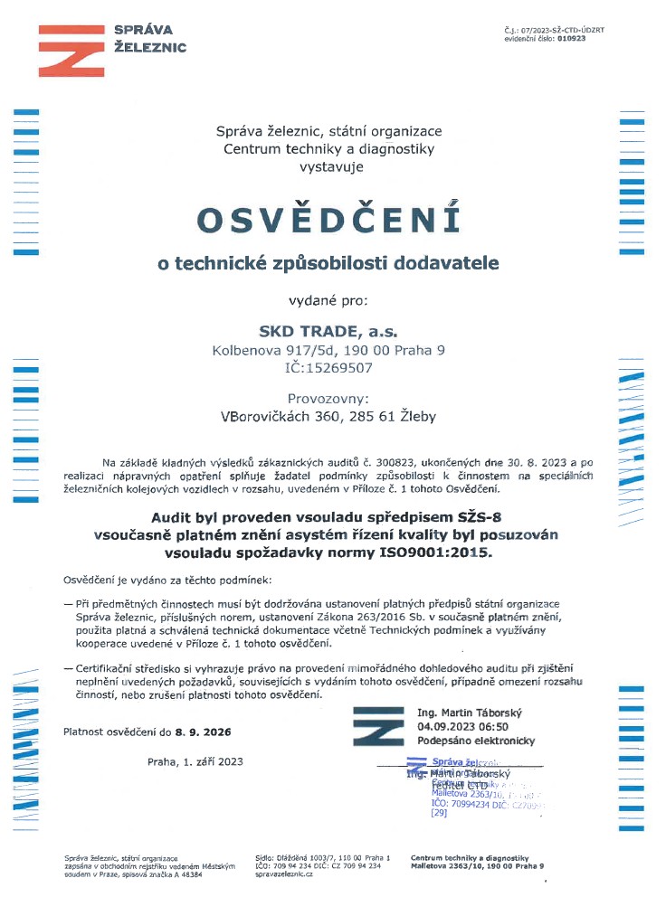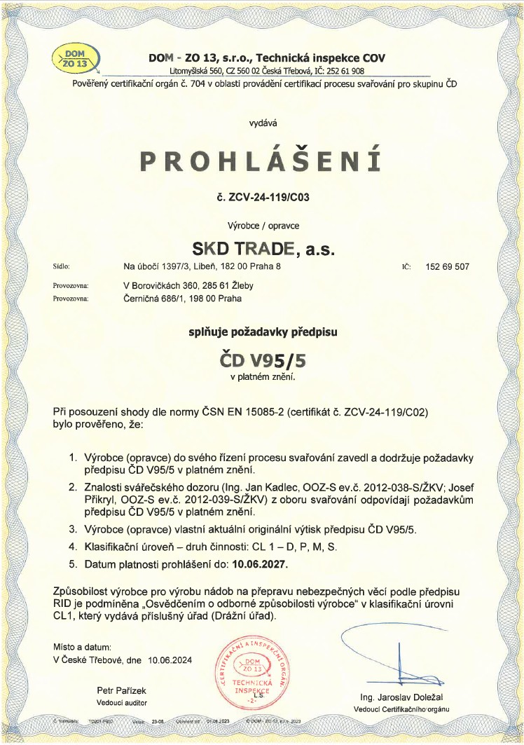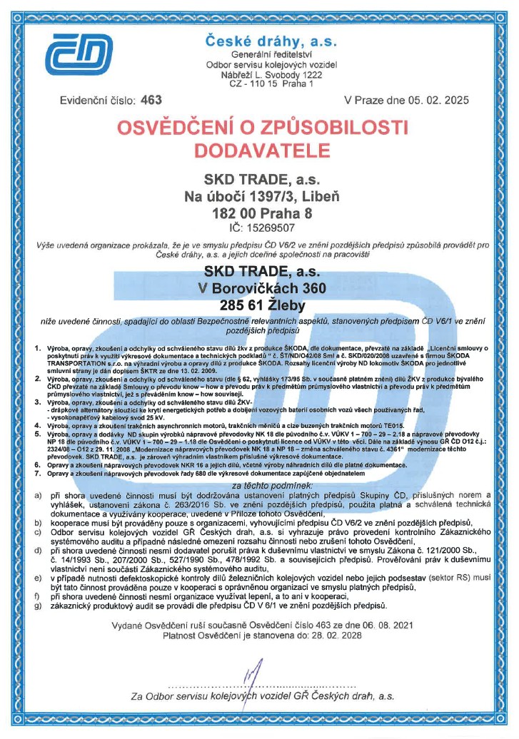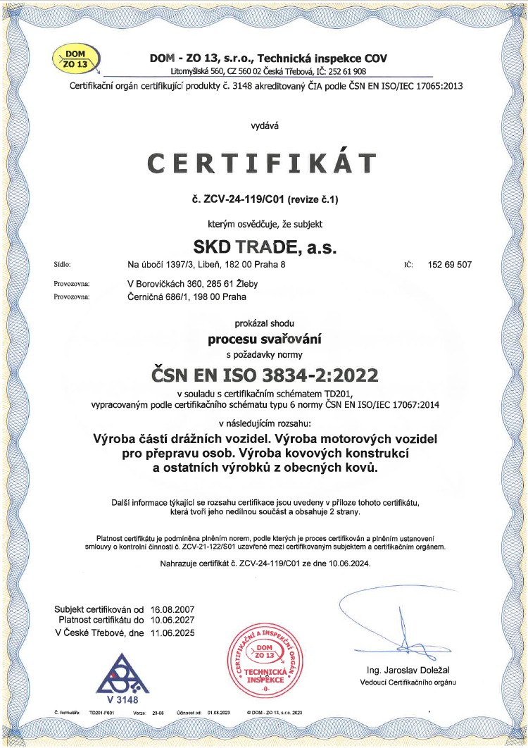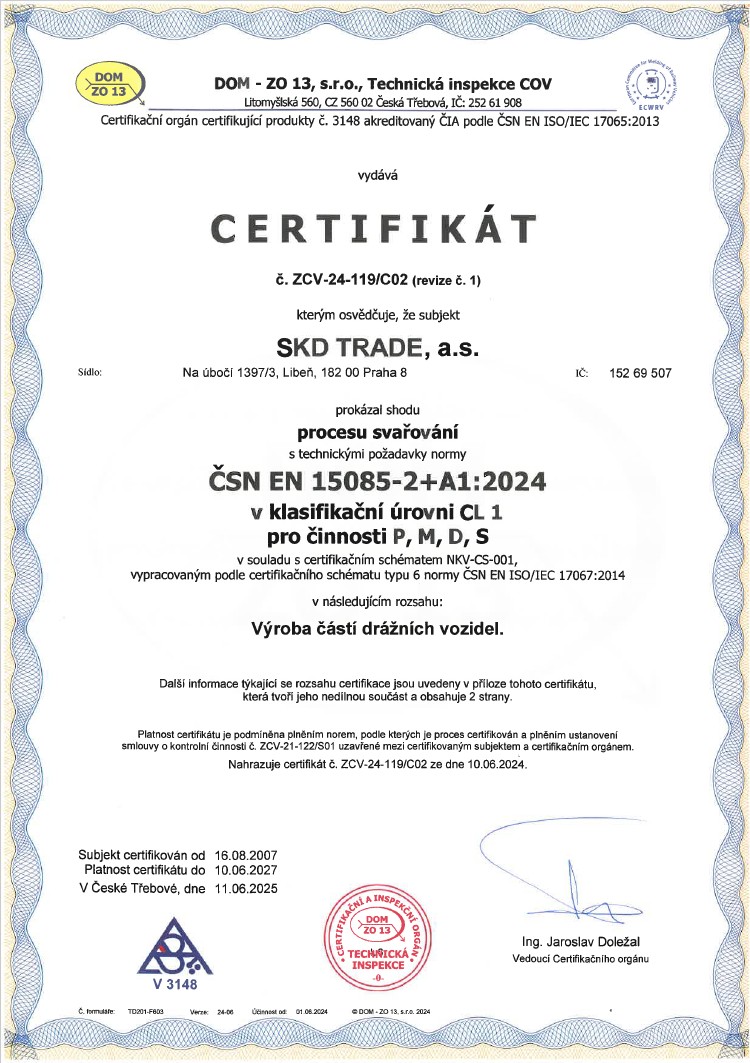 Společnost SKD TRADE, spol. s r. o., byla založena v roce 1991 se základním kapitálem 17 mil. Kč. Od roku 1996 svou činnost zaměřuje na výrobu a opravy dílů pro kolejová vozidla.